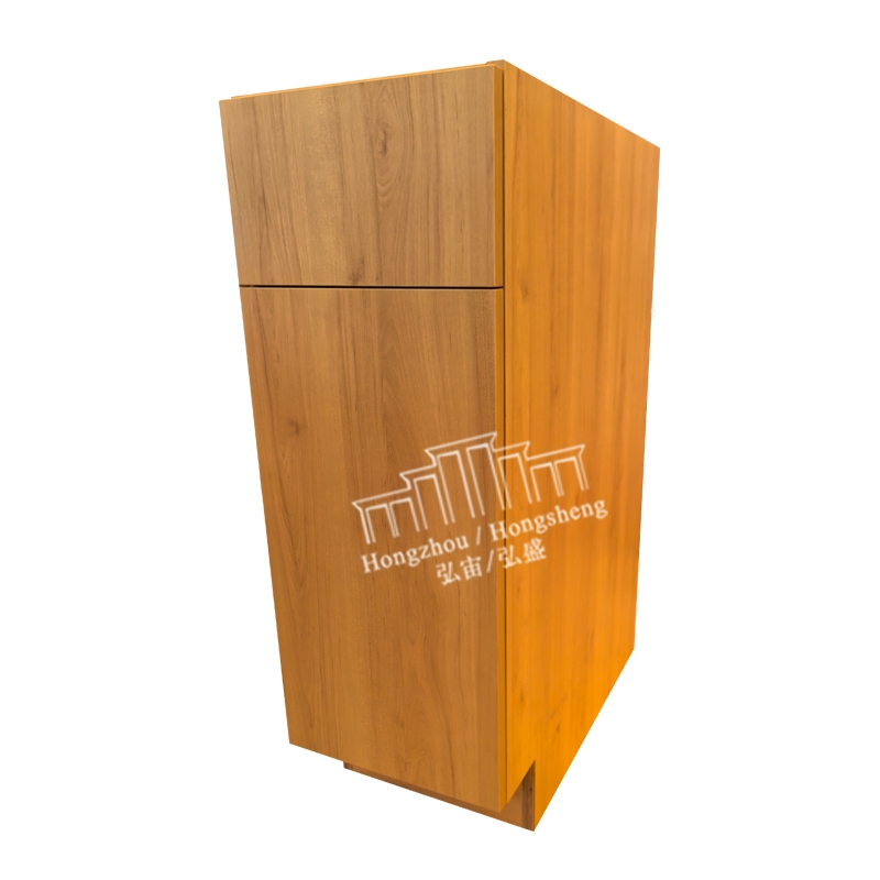Brown Wood Grain Slab Door Melamine Kitchen Cabinet